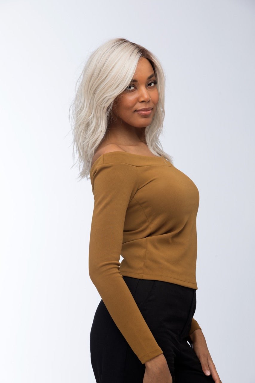 The visual result is a lived-in, multi-dimensional color with darker roots that naturally lighten through the mid-lengths into silver and golden-sun tones at the ends. It's a color that photographers and colorists refer to as "money hair" — the kind of dimension that takes multiple appointments to achieve naturally, captured here in a single style. On a long, layered beachy wave, SILVERSUNRT8 moves beautifully as each layer catches light differently.