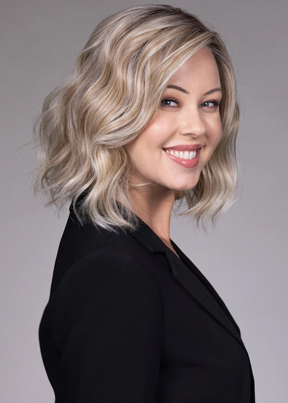 The side part, wispy 3.5-inch bangs, and softly tousled waves make Veronica adaptable to various face shapes while maintaining its signature effortless sophistication.