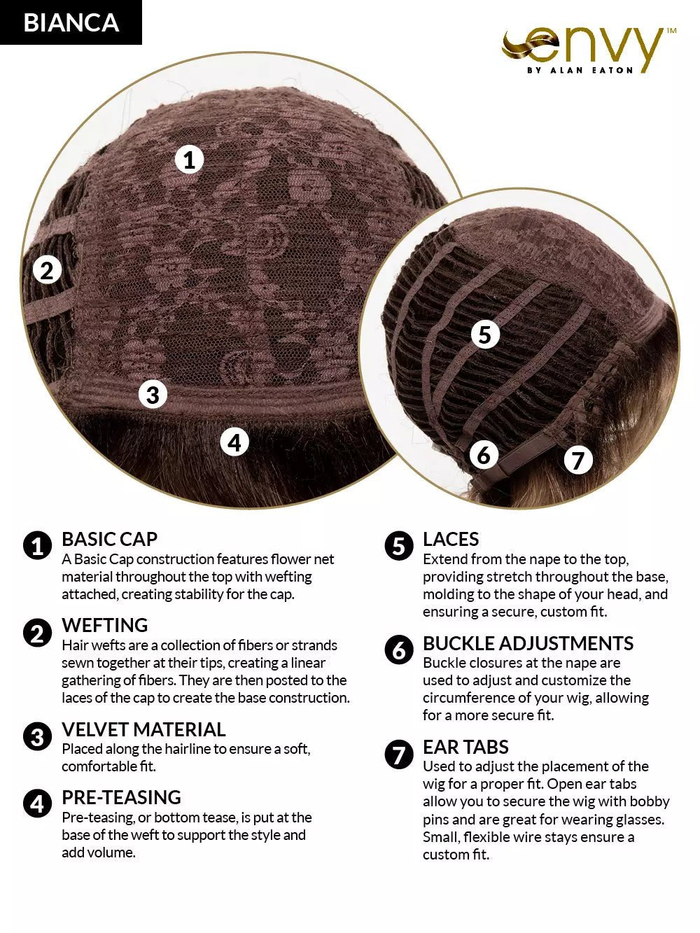 - Lengths: Front: 7.75" | Crown: 8.5" | Side: 8.25" | Nape: 5.5"