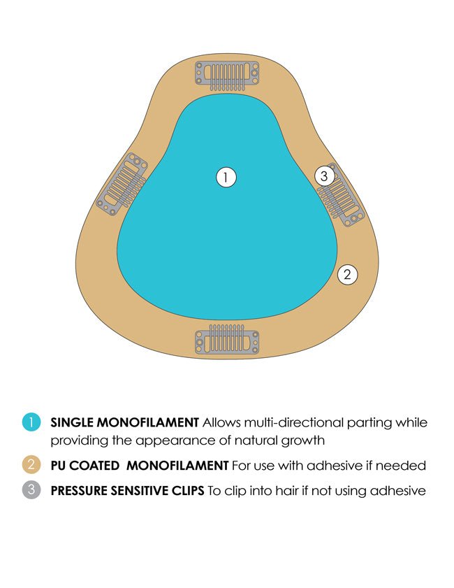Surrounding the monofilament center is a three-quarter-inch polyurethane coated perimeter. This wider poly border serves two purposes: it reinforces the base edges against daily wear and tear, and it creates a smooth, flat surface that accepts tape and adhesive cleanly. For women exploring extended-wear attachment for the first time, this construction detail is what makes the transition from clips to bonding possible without needing a completely different topper.
