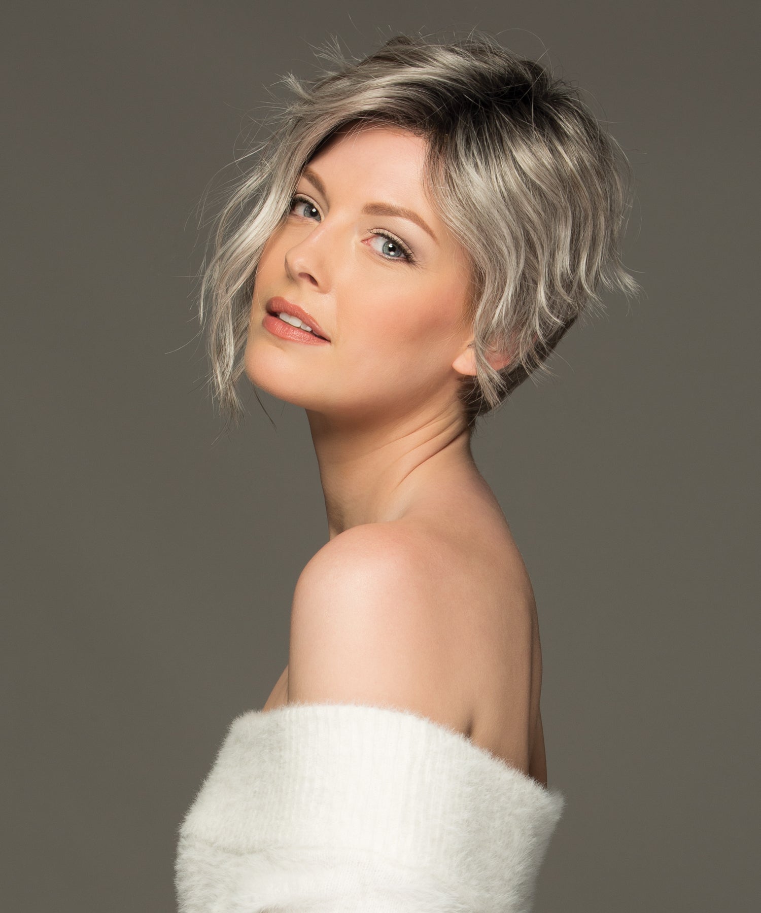 Mit der Ryan-Perücke von Estetica können Sie einen kühnen, modernen Look kreieren - einen schicken, asymmetrischen Pixie-Schnitt mit langem, seitlich geschwungenem Pony. Dieser stilvolle Pixie kombiniert eine kurze Länge auf der einen Seite mit längeren Lagen auf der anderen Seite und schafft so einen modischen Kontrast, der jedes Ensemble aufpeppt.