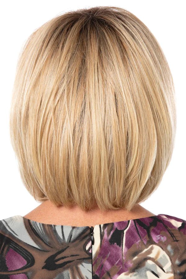 Look and feel sophisticated in the Whisper by Toni Brattin. Featuring a collar-length bob cut with a perfect diagonal bang and sleek sculpted shape, as well as smooth-straight precision razor-cut tapering and ends that naturally curve under, this wig is both classic and trendy. Plus, its adjustable cap ensures a secure and comfortable fit.
