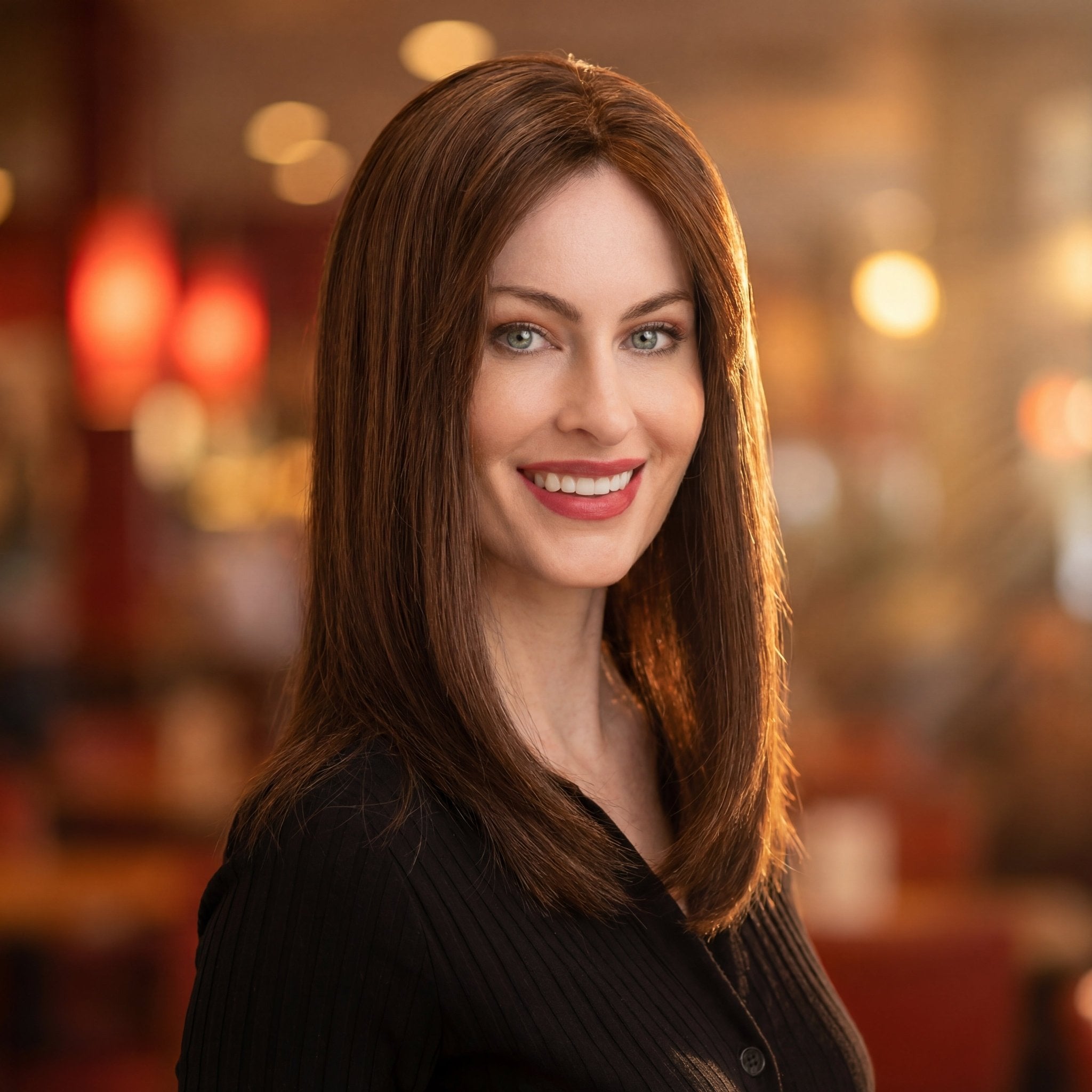 Lange, weiche, das Gesicht umrahmende Frisur mit Scheitel oder verspieltem Pony für einen vielseitigen und modernen Look.