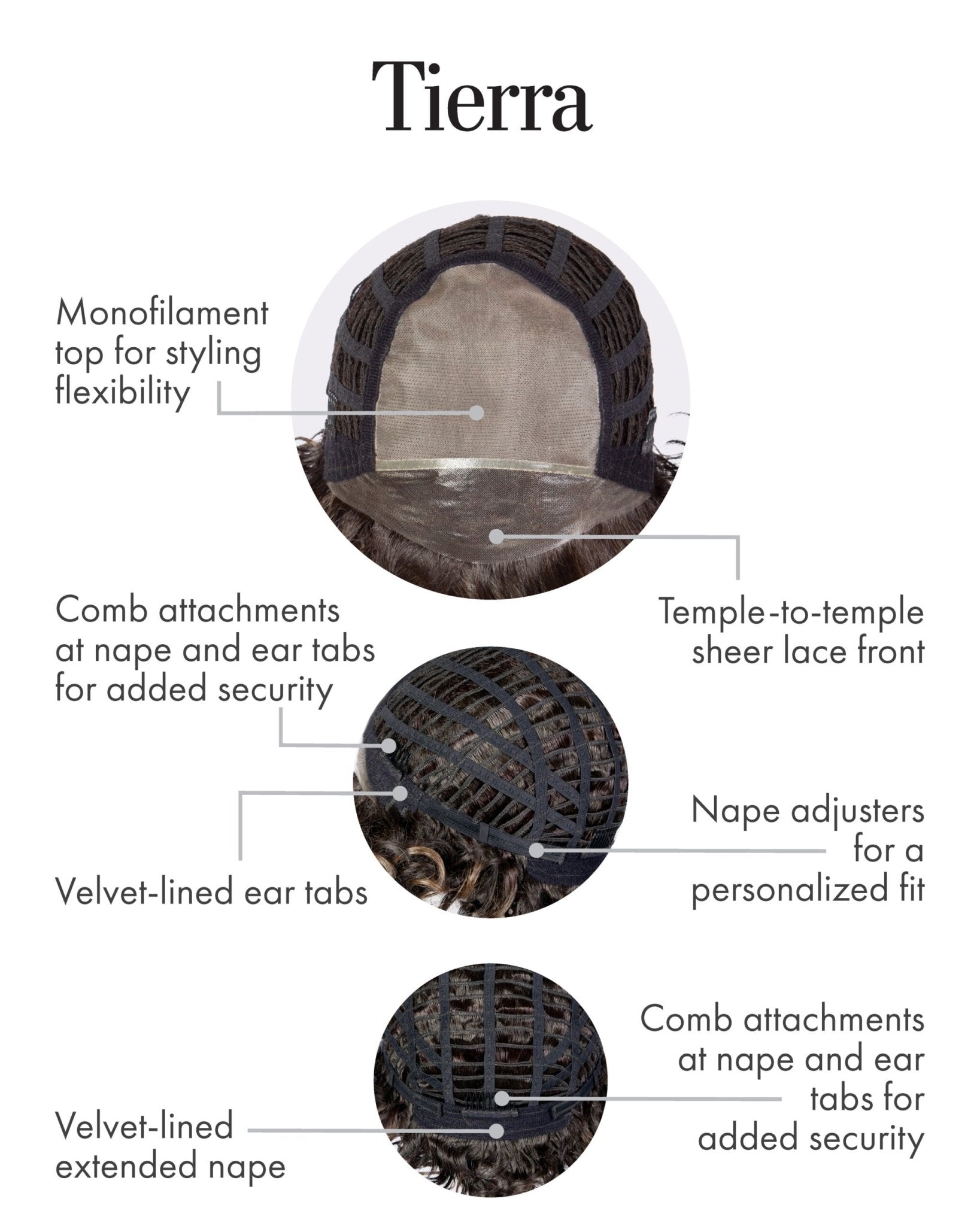 Wir stellen vor: TIERRA - das Rampenlicht mit voluminösen, spiralförmigen Locken und einer einzigartigen, geschnittenen Form. Diese charismatische Frisur ist dazu bestimmt, Ihr typischer Look zu werden. Die gestufte Fülle am Scheitel und an den Seiten verjüngt sich anmutig zu einer schicken V-Form im Nacken und schafft eine elegante Silhouette.