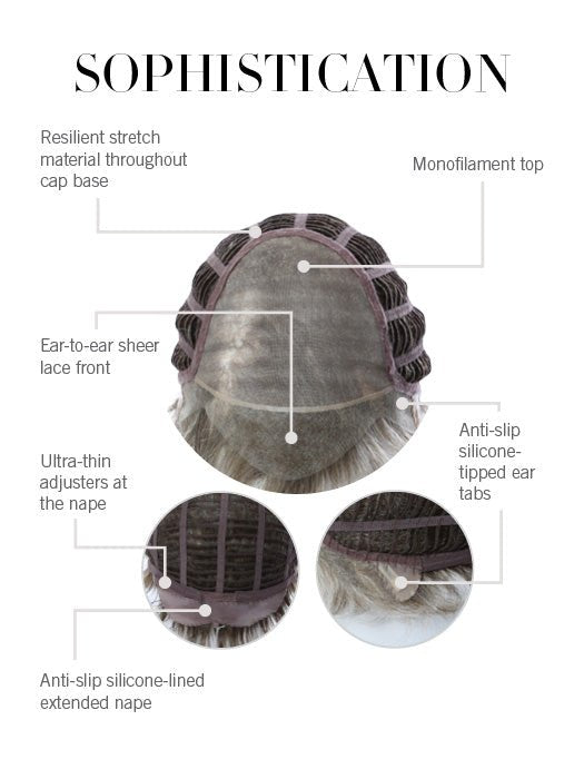 This cut has free-flowing, longer lengths on top with loosely textured sides and back. All over, piecey, razor cut lengths are long enough to tuck behind the ears for a sleek look. The lace front was made specifically for HIM and creates the ultimate hairline that can be styled forward or back. This style got its name for its casual look and tough attitude.