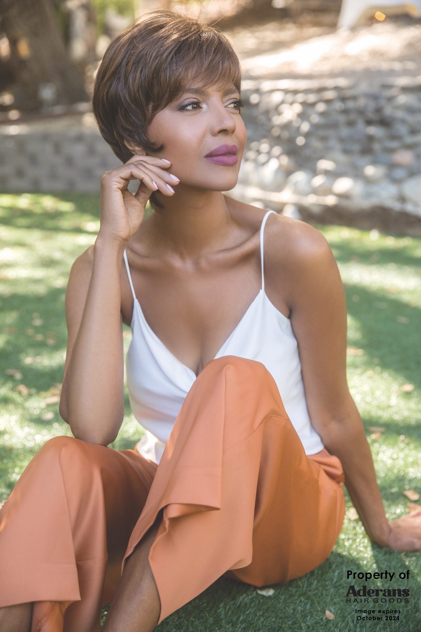Sally from our Noriko Collection is a short-length synthetic wig. This straight ready-to-wear wig is a short layer style with a soft fringe to frame the face while a tapered back hugs the nape. Sally is machine made with adjustable tabs in the back nape area to allow a more comfortable fit. The result is a comfortable fit with a natural look that is both fashionable and easy to wear.