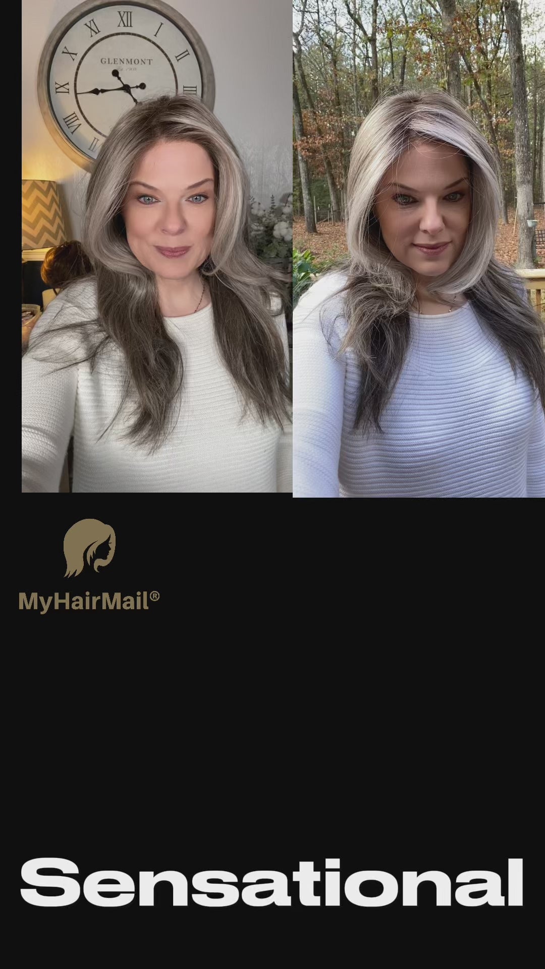 Sensational is a part-anywhere with face framing bangs that graduate into feathered layers that fall to the mid back. A Sheer Comfort cap with a hand knotted soft monofilament mesh and ear to ear lace front designed for an undetectable hair line. All day, every-day comfort and the styling versatility to brush back off the face and even pull your hair into a pony-tail.