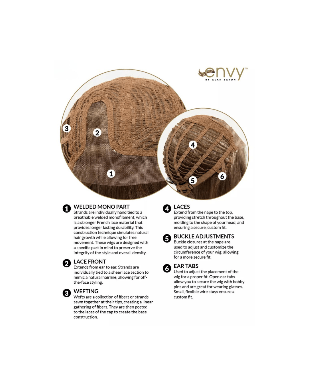 - Lengths: Front: 6 3/4" | Crown: 4 1/2" | Side: 3–5" | Nape: 1 1/2"