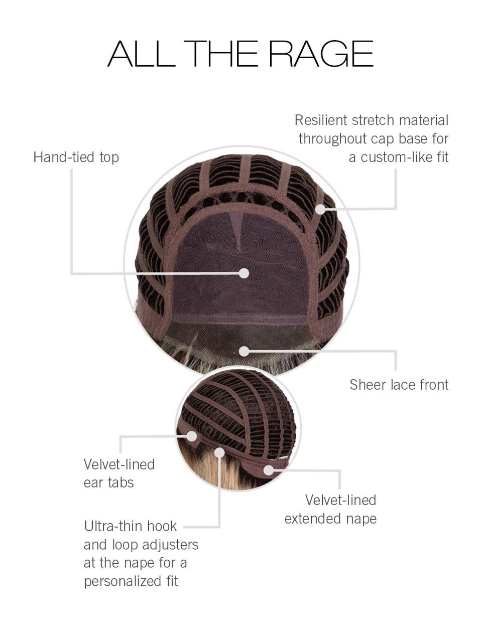 - Bang/Fringe: 4.25" | Crown: 8" | Sides: 7.25" | Back: 8.25" | Nape: 5"