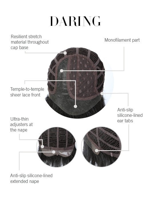 Length that speaks volumes. The perfectly shaped lace front was crafted to an amazingly realistic hairline. The left monofilament part can accommodate a defined look or something undone and natural. More length equals more options. Style the hair slicked back or down and messy around the face. With this precise cut, no look is off limits.