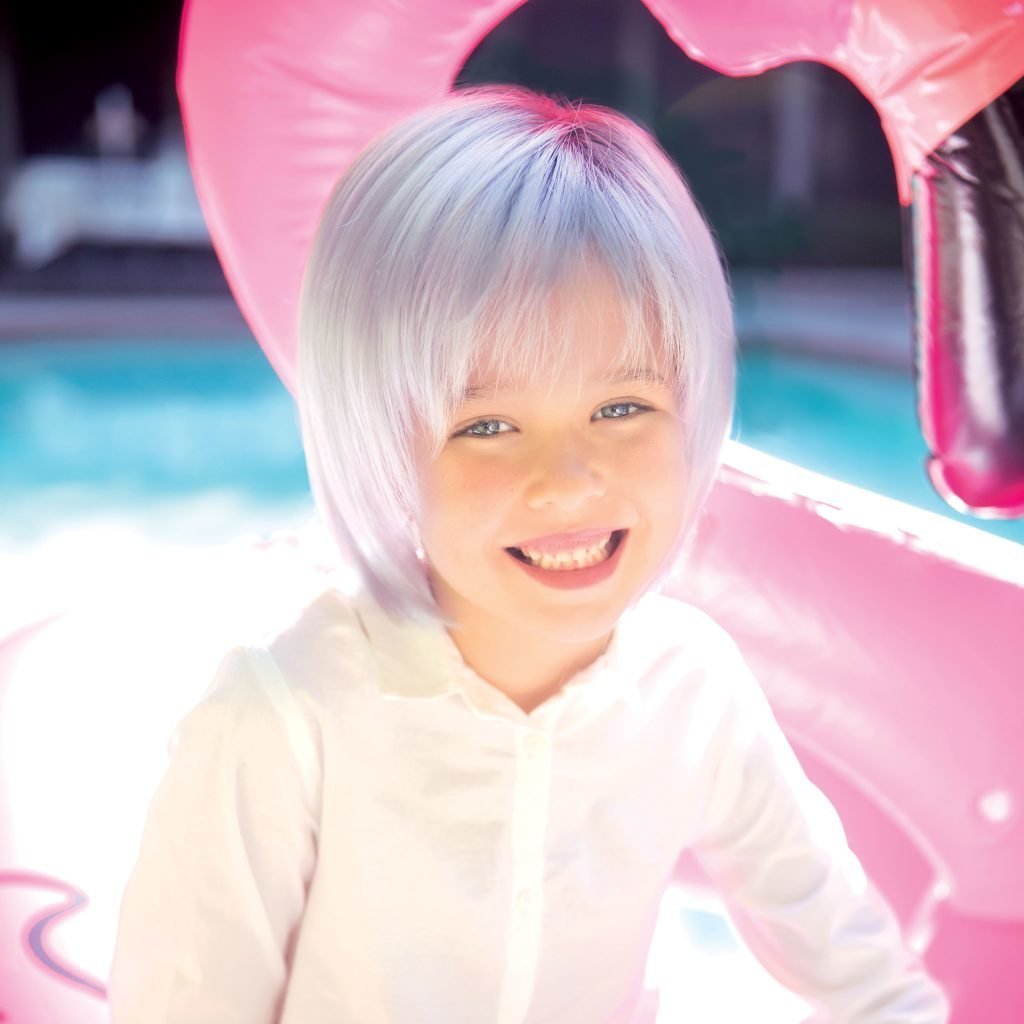 Kensley de notre collection de perruques pour enfants Amore est une perruque synthétique courte. Cette perruque droite prête à porter est un bob A-Line avec une frange balayée sur le côté pour plus de polyvalence. Nos perruques pour enfants avec bonnet en dentelle sont légères, confortables, tissées et avec une ligne de cheveux invisible pour un confort ultime. Le bonnet de Kensley comprend une partie avant en dentelle et une partie arrière en dentelle avec un dessus en monofilament recouvert d'un matériau doux avec un lacet élastique qui permet au bonnet de s'étirer pour plus de flexibilité.