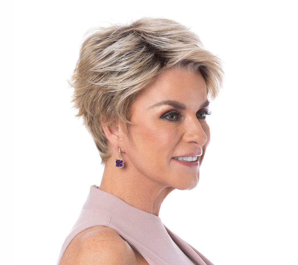 The Toni Brattin Inspiration Wig features All-Over Loose Layering with Textured Flipped Ends that Sweep Up Softly in the Back. The Inspiration Short and Casual Styling is accented by the Subtle Contour and Tapered Neckline. Wear Tousled or Smooth depending on Your Mood for a Natural Look. Available in Regular & Plus Sizes - the Specially designed Wig Cap can be Easily Adjusted for a Custom, Secure and Comfortable Fit using the Sizing Tabs in the Neckline of the Wig. Nylon Wig Cap Included. All Toni Brattin Wigs have the Look and Feel of Healthy, Natural Hair.