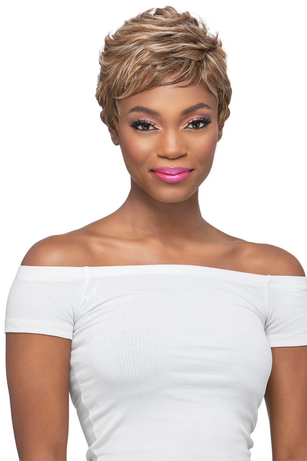 Discover effortless elegance with the EMORI by Vivica Fox, a beautifully crafted short wig that combines classic sophistication with modern comfort. Part of Vivica Fox's renowned collection, this style showcases the brand's expertise in creating natural-looking, comfortable wigs with premium synthetic fibers.