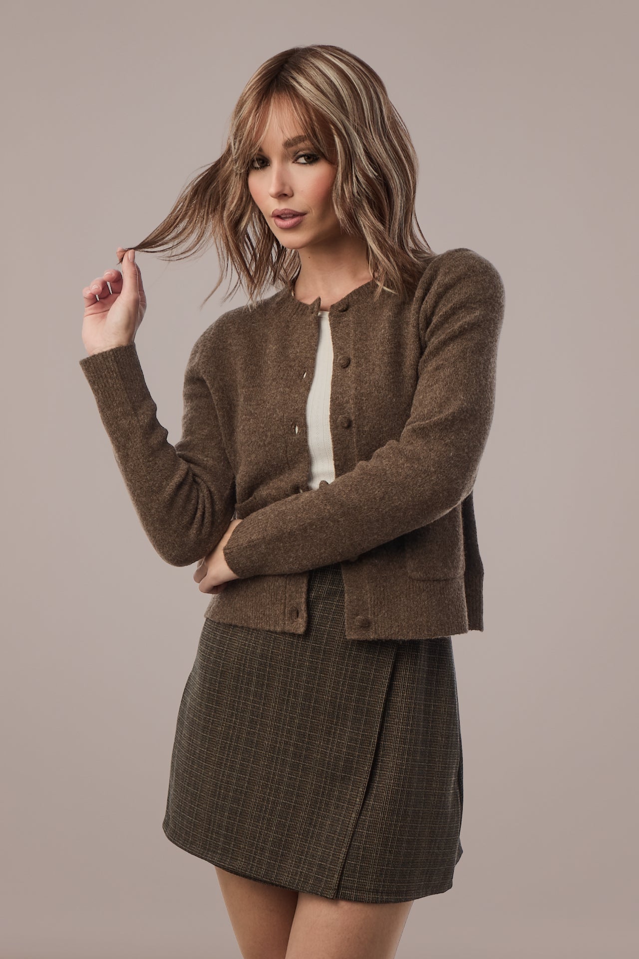 The side-swept bangs flatter a wide range of face shapes while framing the face beautifully. At 13 inches at the crown and 7 inches at the nape, this mid-length cut hits the sweet spot between manageability and statement-making style.