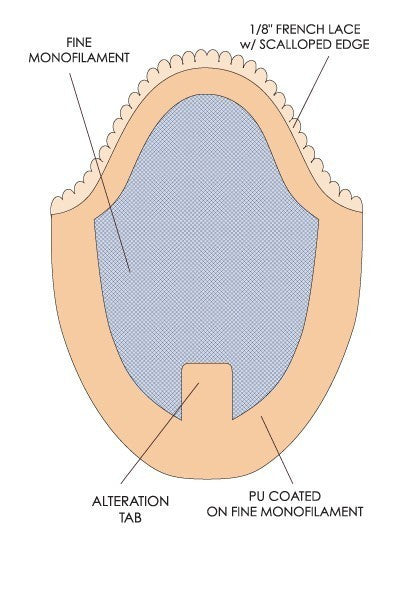 Polyurethane-Coated Perimeter The perimeter of JJ's monofilament base is coated with a thin layer of polyurethane (PU). This PU perimeter strip serves two essential functions that the monofilament base alone cannot provide.