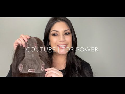 Achieve perfect coverage and natural style with the Couture topper from Ellen Wille's Top Power Collection. Crafted to suit those in the early to mid stages of hair loss, it features a T-shaped base design and 11-12" of heat-friendly synthetic fibers for custom styling. Plus, its hand-tied and lace front design delivers unbeatable realism. Add it to your Ellen Wille collection for a flawless finish.
