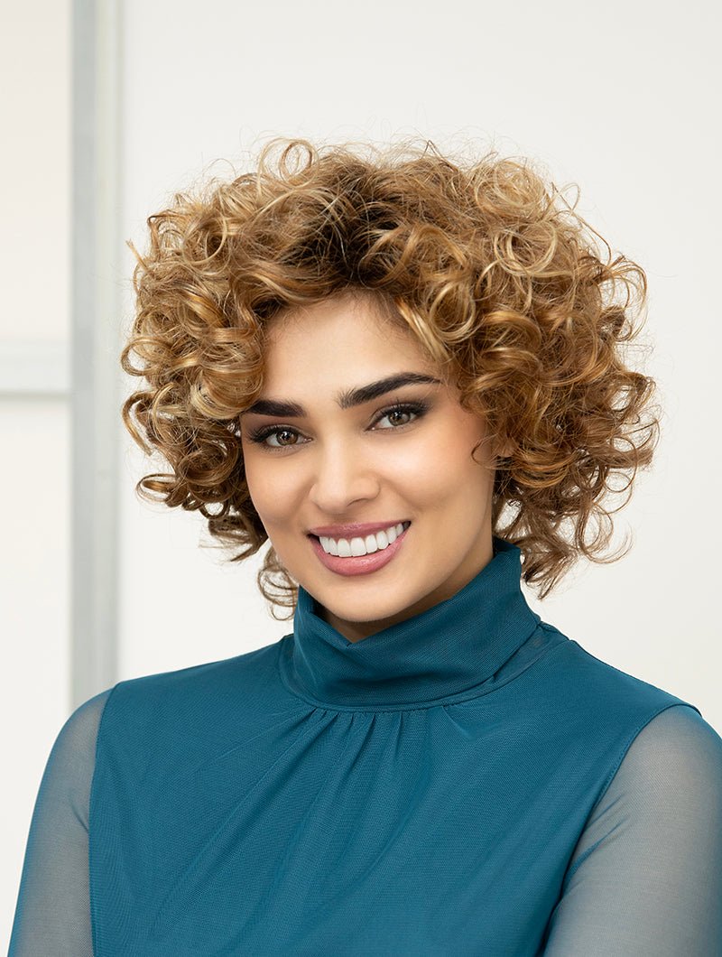 With a full head of bouncy curls, Kenya’s chin length ‘do gives you volume for days. Her mono crown construction gives this wig one of the most natural appearances available, so you can run your fingers through those curls without revealing a thing.