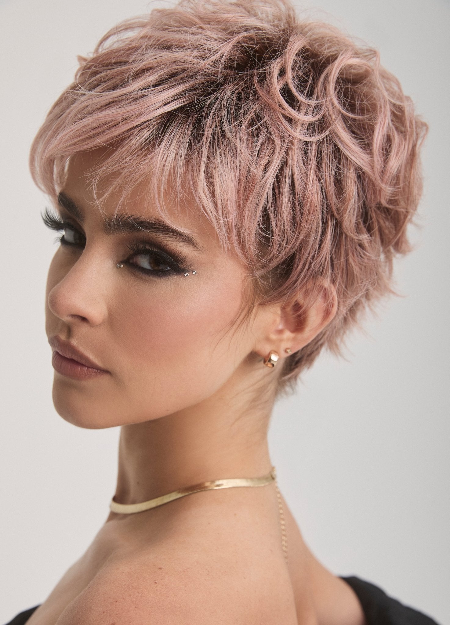 This sophisticated short style combines effortless elegance with modern versatility. Featuring a perfectly tousled pixie cut with wispy side-swept bangs, Luca frames your face beautifully while providing ultimate styling flexibility.
