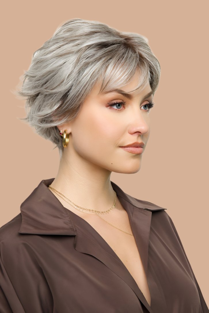 Star by Rene of Paris, from the Orchid Collection, is a stylish short wig featuring choppy layers that add playful texture. The lace part and extended lace front provide a natural-looking hairline, enhancing the overall discreet appearance. Made from heat-friendly synthetic fibers, this wig offers versatility in styling—whether you want to flip the ends up for a fun look or smooth the hair down for a more refined style.