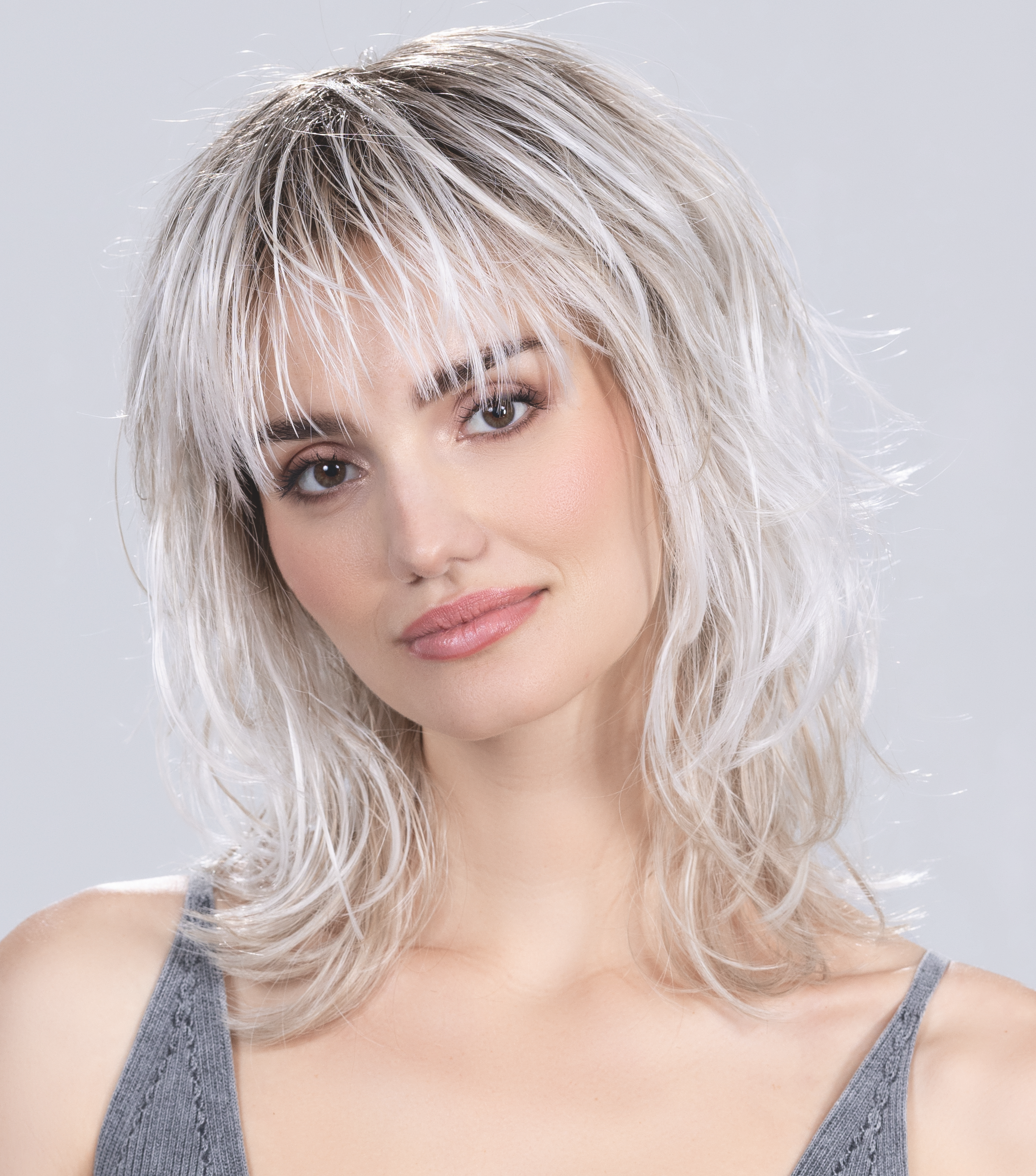 shoulder length wig, choppy layered wig, textured fringe wig, Ellen Wille Energy, Perucci Collection wig, monofilament crown wig, heat-friendly synthetic wig, modern edgy wig, rock and roll wig, tousled layers wig