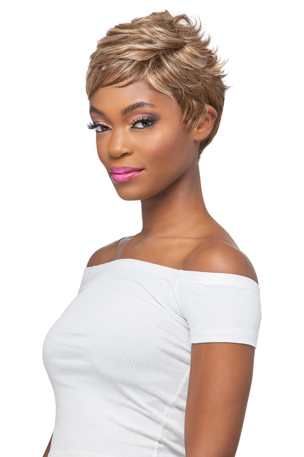 Discover effortless elegance with the EMORI by Vivica Fox, a beautifully crafted short wig that combines classic sophistication with modern comfort. Part of Vivica Fox's renowned collection, this style showcases the brand's expertise in creating natural-looking, comfortable wigs with premium synthetic fibers.