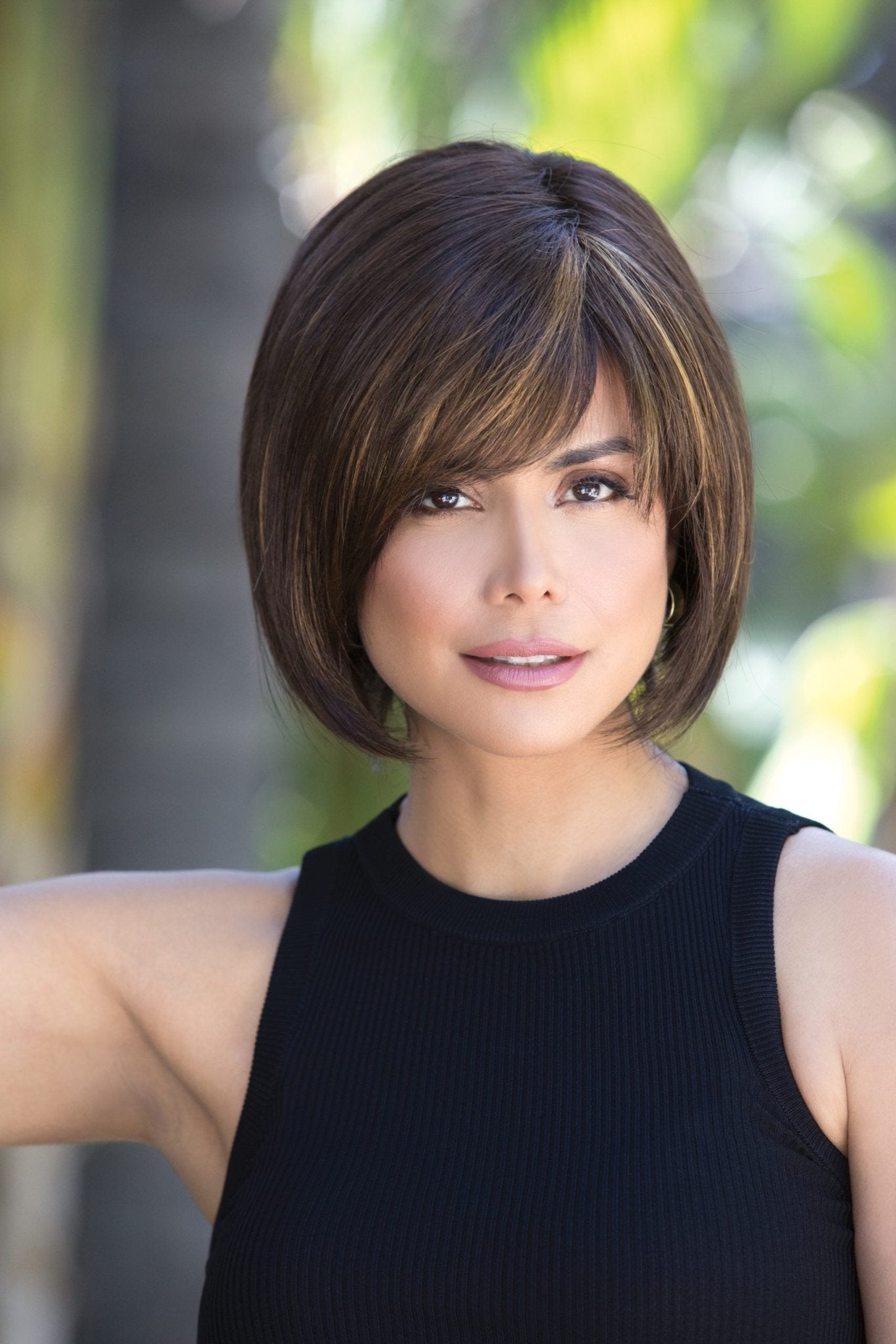 Jolie from our Noriko Collection is a short-length synthetic wig. This straight ready-to-wear wig is a perfectly layered modern bob. This sleek bob is a timeless refined hairstyle . Jolie is Monofilament top with adjustable tabs in the back nape area to allow a more comfortable fit. The Monofilament top gives you a light breathable base and a more realistic appearance to create a natural illusion which allows you to change the direction of the part on the wig. It provides the ultimate versatility and comfort.
