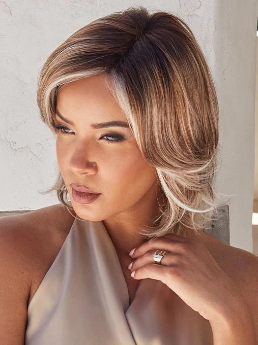Introducing Kade by Noriko, a synthetic wig that sits just above the shoulders and offers a naturally wavy, face-framing layered look. This ready-to-wear wig is an essential addition to your collection. The lace front and lace part create the illusion of natural hair growth from the scalp, while adjustable tabs in the nape ensure a customized fit for all-day comfort.