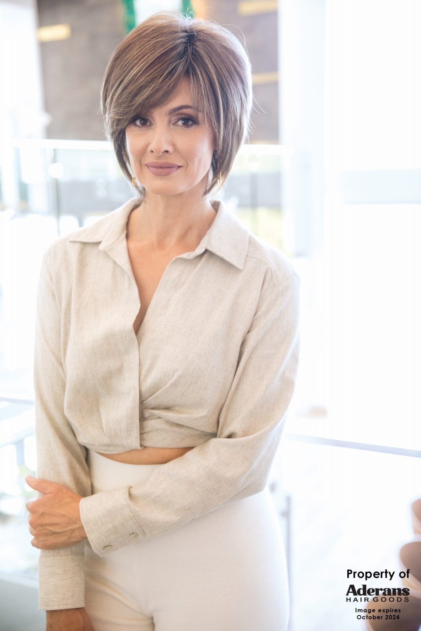 Reese Large Cap, from the Noriko Collection, offers a bold, short-length style with the ease and comfort of an expanded cap size—approximately 1.5” larger than the original. This popular style features tousled layers, a sassy bob shape, and an edgy fringe, making it a best-seller in a roomier fit. Designed with a machine-made cap and adjustable tabs at the nape, Reese Large Cap provides a natural look with a secure and comfortable fit that’s effortless to wear.