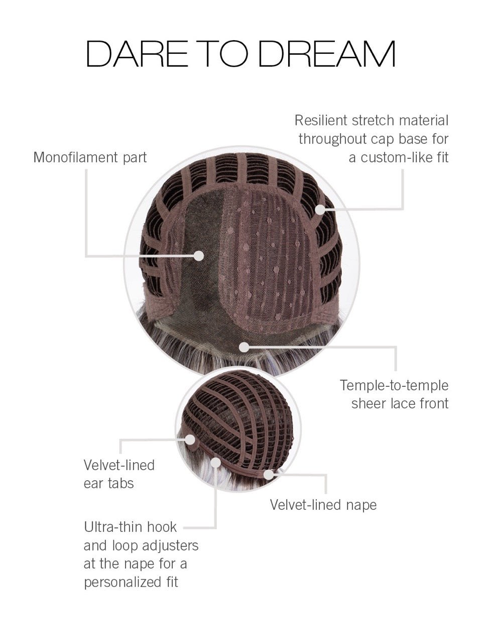 The Dare To Dream wig combines vibrant, trend-setting color with professional-quality construction, making it an ideal choice for those seeking fearless style and comfortable, secure wear. Engineered with Gabor's premium TRUPLIFE® synthetic fiber, this chin-length bob maintains its beautiful shape and lustrous pastel finish with minimal maintenance. The temple-to-temple sheer lace front creates an undetectable, natural-looking hairline with maximum styling versatility, while the personal fit cap construction ensures a customized, secure fit. The monofilament part allows for natural scalp appearance and flexible parting options, providing realistic movement and breathable comfort for all-day wear.