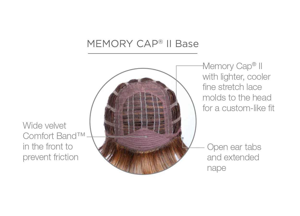 - Memory Cap Technology Experience the revolution in wig comfort with our exclusive Memory Cap. Made from fine, resilient stretch wefts, this innovative cap actually memorizes the contours of your head, providing a custom fit that improves with each wear. The result? Unparalleled lightweight comfort that feels like it was made just for you.