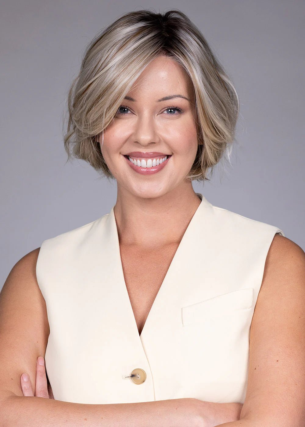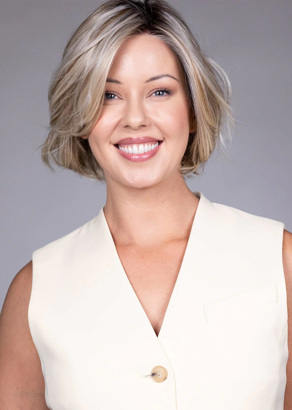 Subtle, loose waves give Kate dimension straight out of the box, but this style is designed to work both ways. Wear it as-is for effortless, softly tousled texture, or smooth it out with a flat iron for a sleek, refined finish. A flattering side-swept front frames the face beautifully and adds an asymmetric sophistication that elevates the classic bob silhouette into something genuinely modern.