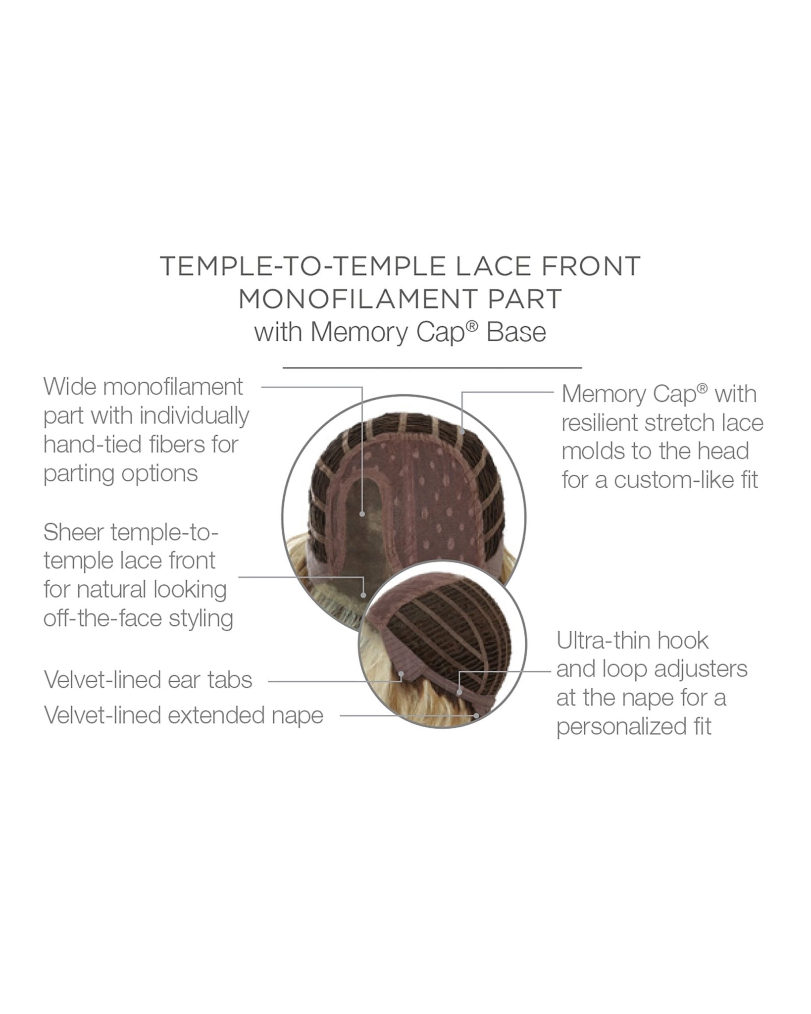 With high-quality construction and premium features, Flirt Alert ensures not only a stunning appearance but also unparalleled comfort. The lace front and monofilament part provide a natural look and versatile styling options, while the Memory Cap® base and ultra-thin adjusters offer a secure and personalized fit.