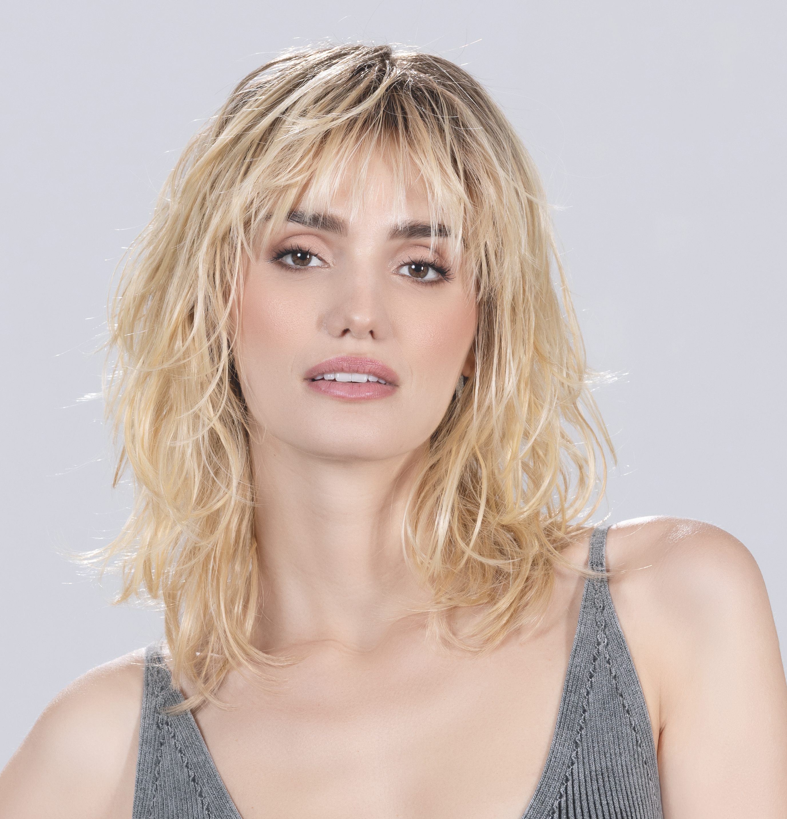 shoulder length wig, choppy layered wig, textured fringe wig, Ellen Wille Energy, Perucci Collection wig, monofilament crown wig, heat-friendly synthetic wig, modern edgy wig, rock and roll wig, tousled layers wig