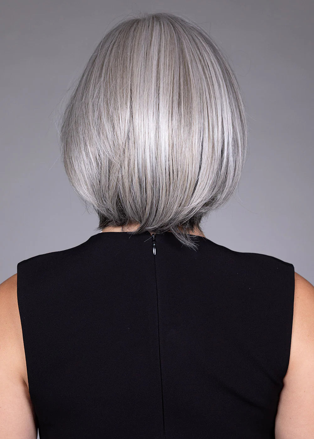 This is a bob style wig in a grey colour which I found matches my skin tone. It is comfortable to wear and can be styled easily. I have had the fringe trimmed to create light bangs .