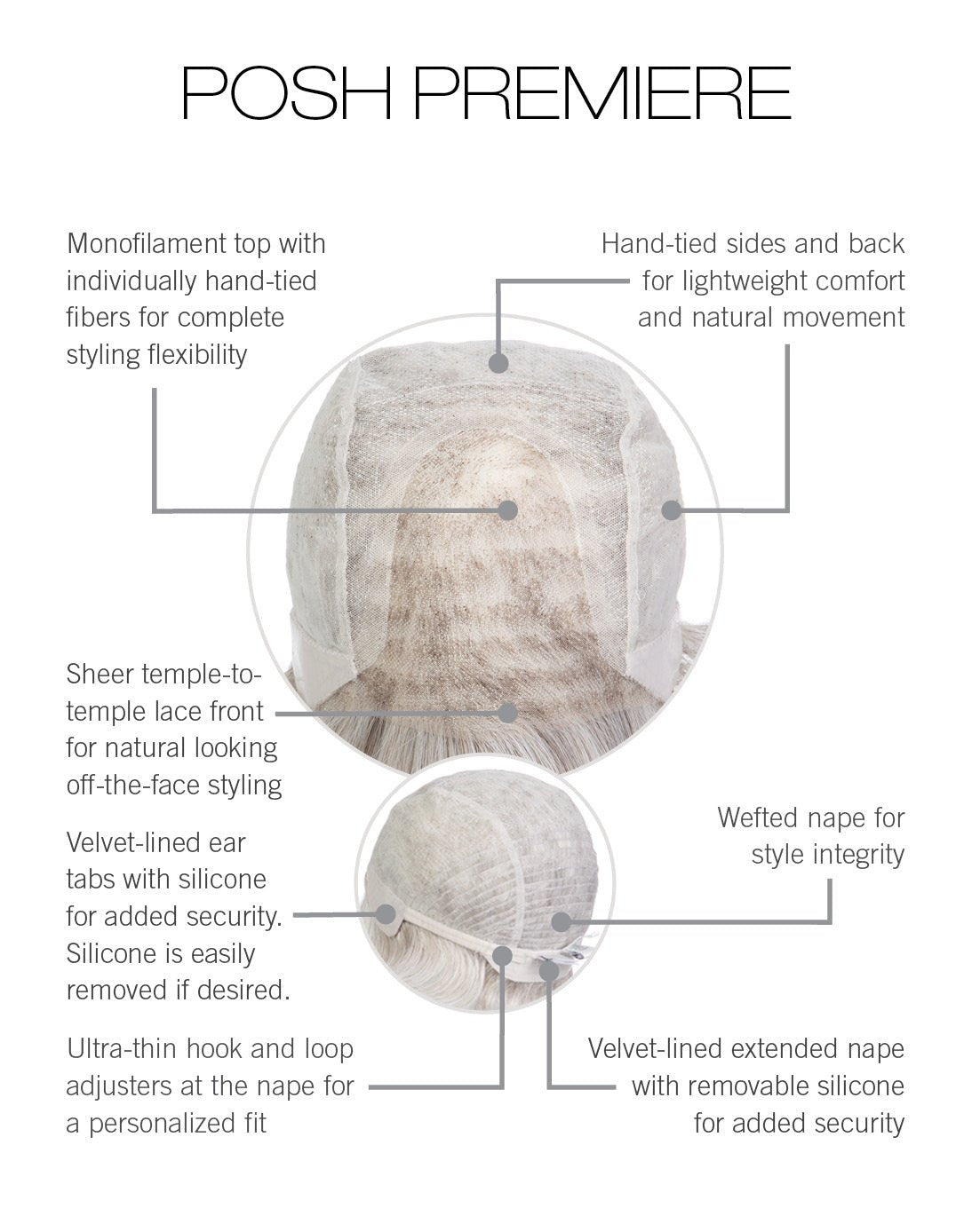 - Hand-stitched, removable silicone strips at ear tabs and nape